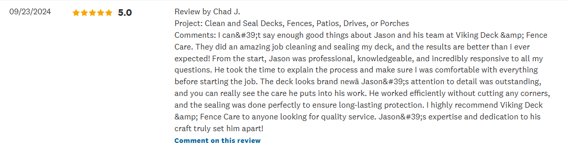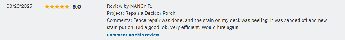 Schedule your free quote meeting. Give us a call, text, or fill out our free quote form. We will reach out and schedule a quick 15-minute meeting to inspect your deck/fence free of charge and go over some options and color choices with you.