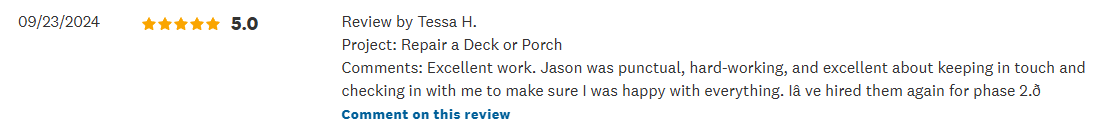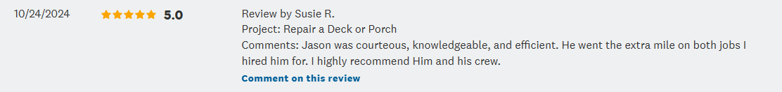 Sit back and relax while we work! We are always on-time and respectful of your time and property. We work on one project at a time so we will continue working until it is complete and be on our way promptly.